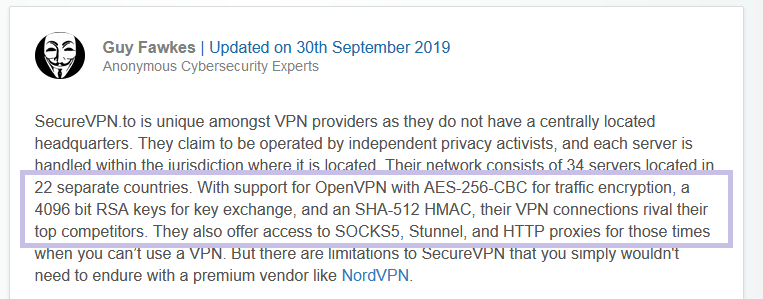 If SecureVPN is so inferior and NordVPN is so fantastic, why not throw us a bone here and explain which features you're referring to? No. Nada. There is no supporting evidence cited here. Perhaps if I click on that handy link to NordVPN, all will be revealed and I'll understand. Or perhaps this is just a way to distract me and funnel my traffic toward VPN Mentor's favored provider. I wonder why Nord is their favorite? Hmm. By suggesting the review I should be reading, this article is subtley guiding readers. Nothing to see here folks. No need to use your brain. We have the answer for you. So convenient.